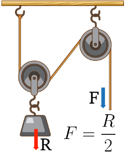 En el caso de la polea móvil la fuerza que debemos aplicar se reduce a la mitad